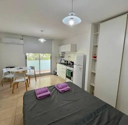 Experience ultimate comfort in Mono Ambiente Lourdes Apartment's kitchen, supplied with an electric kettle, a fridge, and an oven. Mono Ambiente Lourdes Apartment is 3.2 km from Rosario Central railway station.